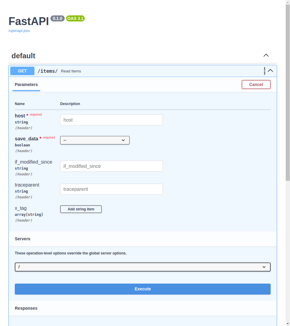 Ви можете побачити необхідні заголовки в інтерфейсі документації за адресою /docs:
