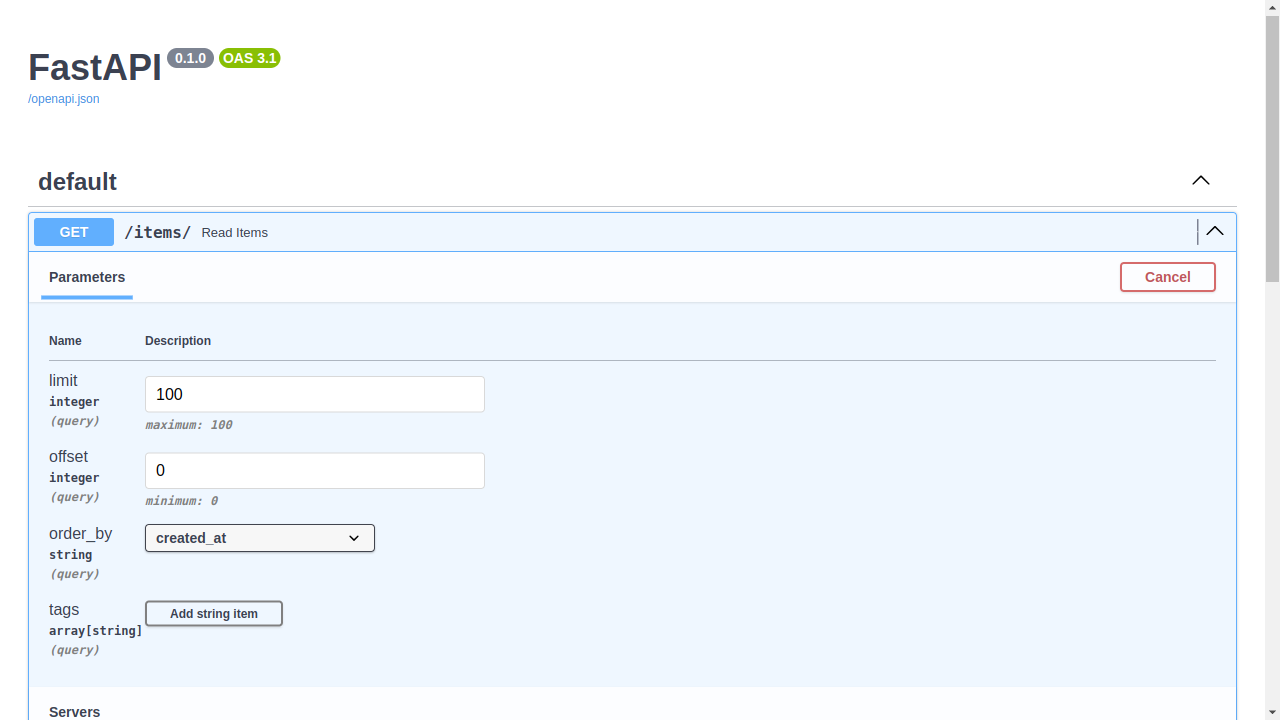 Ви можете побачити параметри запиту в UI документації за /docs: